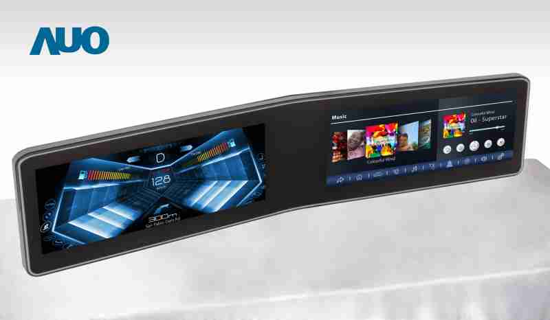 尊龙集团 V 型曲面驾驶舱显示器,,,采全贴合拼接仪表板及中控台显示屏 |